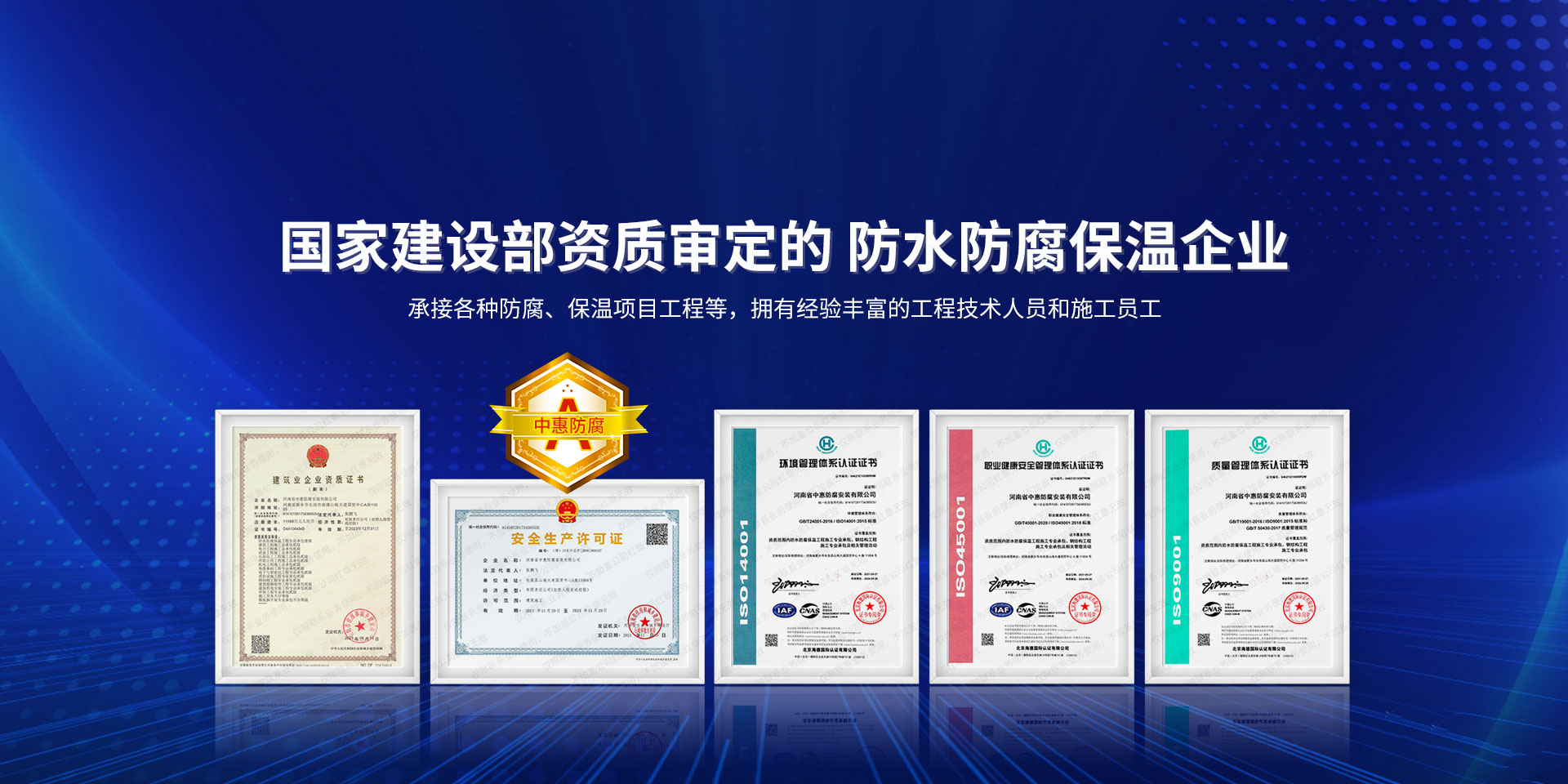 公司經營范圍:防水防腐保溫工程;消防設施工程;建筑裝修裝飾工程;建筑機電安裝工程;電力工程;建筑工程;石油化工工程;工業清洗工程;油罐清洗工程;鋼結構工程;環保工程;模板腳手架工程;電纜防火封堵、防污閃噴涂、外墻外保溫工程;各類施工勞務作業;設備維修、船舶鉚焊、涂裝;電力工程材料、建材、防水材料、防火材料、防腐保溫材料銷售,并相繼通過了GB/T19001-2008idtISO9001:2008GB/T50430-2007質量管理體系認證證書。GB/T24001-2004idtISO14001:2004環境管理體系認證證書。GB/T28001-2011idtOHSAS18001:2007職業健康安全管理體系認證證書。公司是中國防腐蝕于防護協會、中國施工企業管理協會、電力協會和中國鋼結構防水協會會員單位。 公司的經營業務涵蓋了石油、化工、電力、冶金、煤炭、船舶、國防、燃氣、水利、環保、交通運輸、航空及國防軍工和輕紡市政等行業的防腐保溫絕熱設備。鋼結構安裝、防火、防水、金屬噴鍍、聚脲噴繪、陰極保護、防滲透堵漏、玻璃鋼及各種磚版材料襯里、橡膠襯里、煙氣硫和耐酸溶劑腐蝕等工程施工。公司連續十年榮獲“省市先進施工企業”“安全生產先進單位”“重合同,守信用企業”和“AA***資質企業”的稱號。2000年被命名為市級文明單位,2002年被國家工商行政管理局命名為“重合同,守信用的企業”、被中國工業防腐蝕技術協會命名為“防腐蝕企業,能源節約及環境保護領域有豐富的經驗和***的業績。工程一次交驗合格率100%。其中攀枝花鋼鐵公司煉鐵廠四號高爐及熱風爐防腐工程、上海寶鋼公司煤氣柜防腐工程、撫順石油一廠裝置防腐項目、齊魯石化公司稀烴廠高塔防腐工程、吉林化學工業公司煉油廠油罐防腐工程、天津石化熱電廠六號爐頂棚聯絡管保溫工程、大慶油田(太倉)力神泵業工程、中國化學工程第十一建設工程、中原油田勘探局工程、中國石化銷售有限公司華北分部、魯皖輸油管道工程、貴州開磷息烽合成氨工程、陜西黃陵煤化工程、中國石油天然氣西部管道塔里木輸油工程、邯鋼集團邯寶鋼鐵公司煉鐵工程、德州供電工程、吉寶(南通)船廠工程,偃師華潤熱力工程、鄭州熱力總公司。 河南省中惠防腐安裝有限公司愿以豐富的施工經驗,***的技術,***的設備,***的管理,***的服務,竭誠為國內外廣大的用戶提供***滿意、******的工程作品。 我公司愿與國內外同仁一道,團結協作,共同推進防腐蝕行業發展! 公司地址:河南省長垣縣建設路北段360號 固定電話:0373-8866488 郵編:453400 網址:http://www_zhff_com_cn.changlongde.com